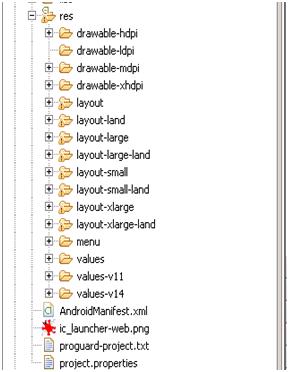 - res/ drawable-hdpi/icon.png → For high density(~240dpi)