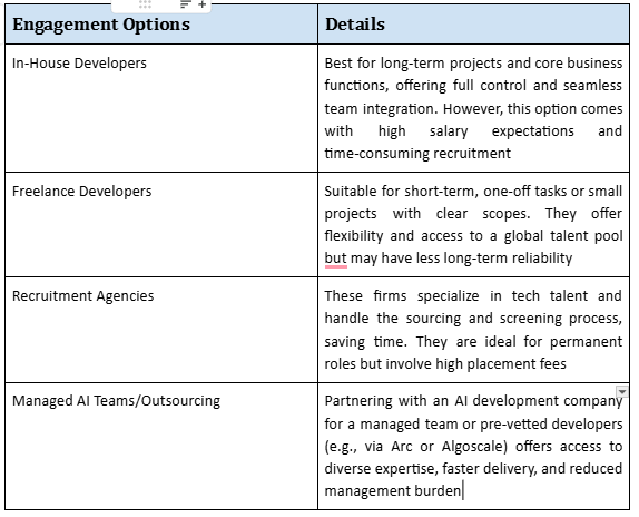 Businesses can choose from several hiring models based on their project scope, budget, and long-term goals: